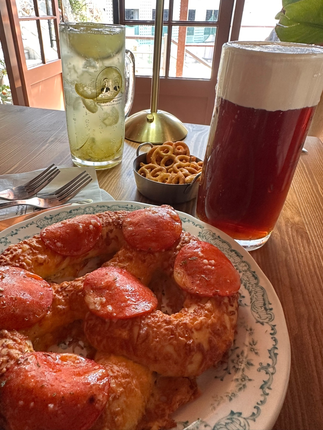 메뉴는 아메리카노, 라떼 등 다양한 커피와 주류까지 즐길 수 있으며 프레첼, 브런치, 디저트 등 음식 구성도 훌륭합니다. 방문했을 때 버터크림맥주와 페퍼로니 프레첼을 맛보았는데, 버터의 풍미가 가득해 짭쪼름한 페퍼로니와 어울려 맛이 좋았습니다. 방문자 리뷰에서도 맛과 분위기, 응대 모두 높은 점수를 받고 있어 다시 찾고 싶은 공간으로 기억될 것입니다.
