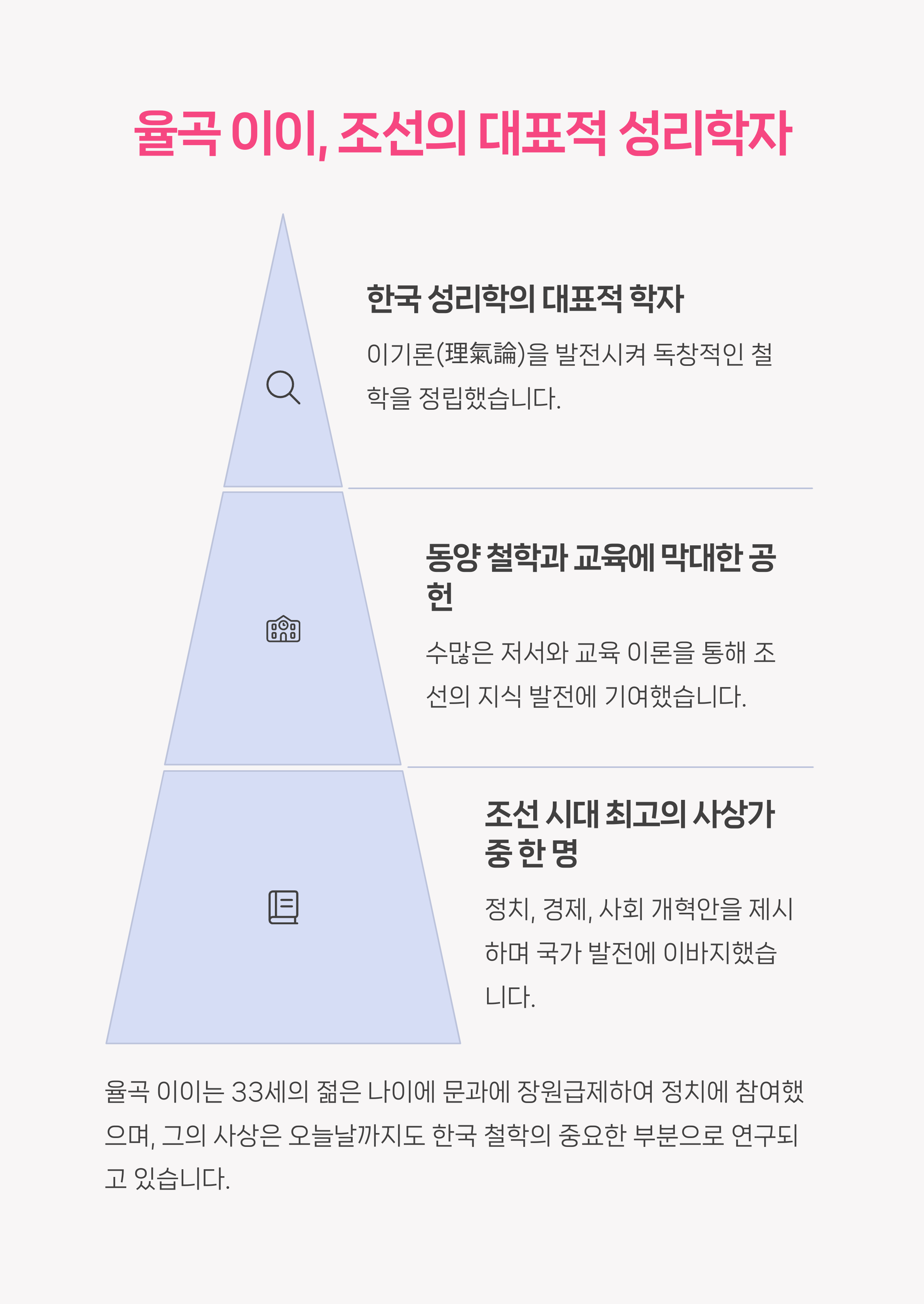 13세 진사 합격, 29세 문과 장원급제, 성리학 확립 |