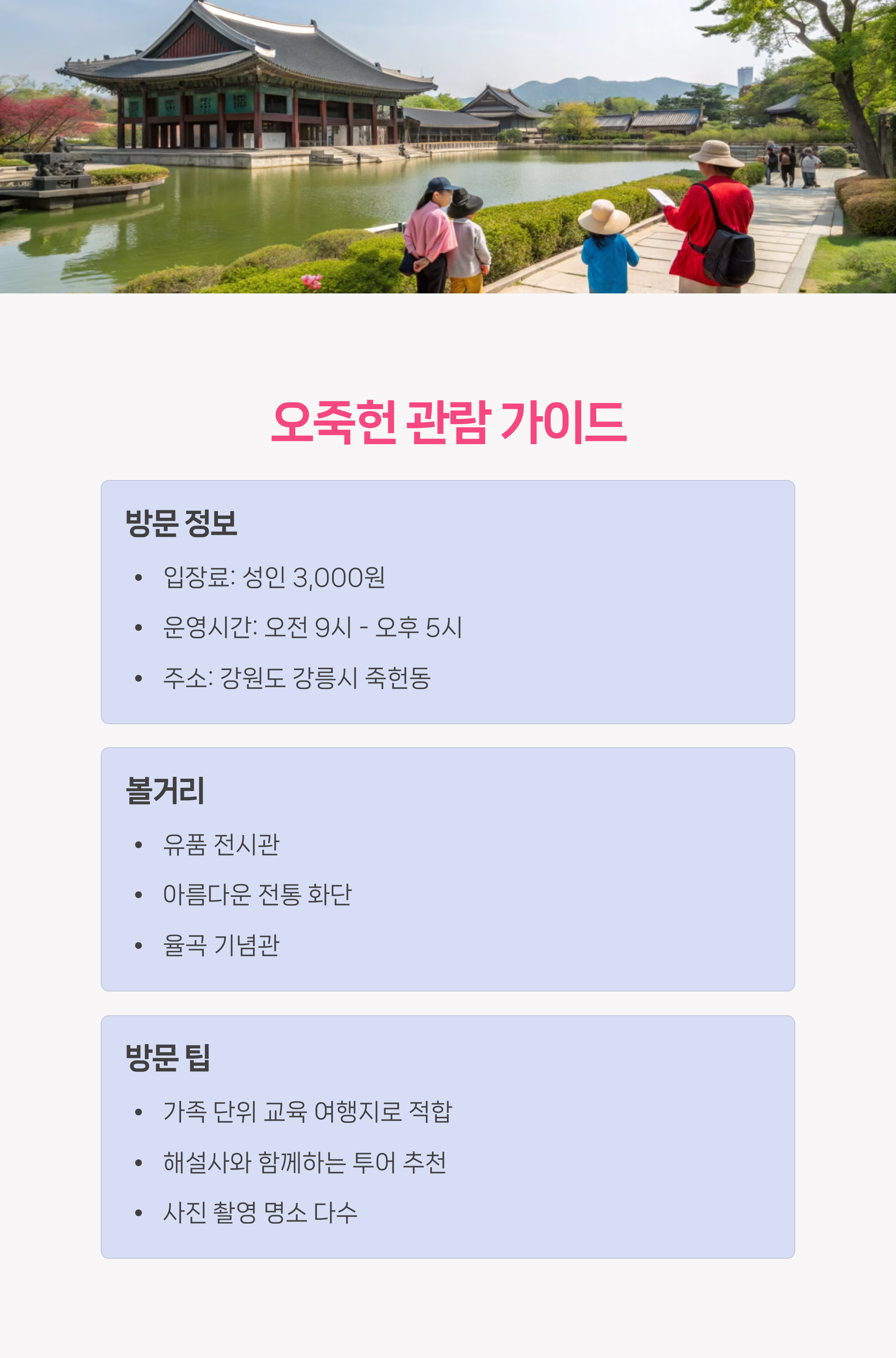 오늘은 오죽헌의 가치와 함께 주변 관광지와 실용적인 방문 정보를 정리해 보겠습니다.