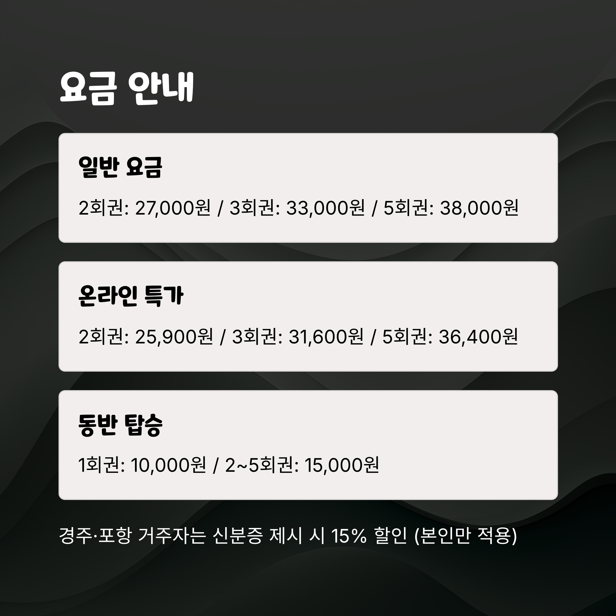 동반 탑승 2~5회권 15,000원 -