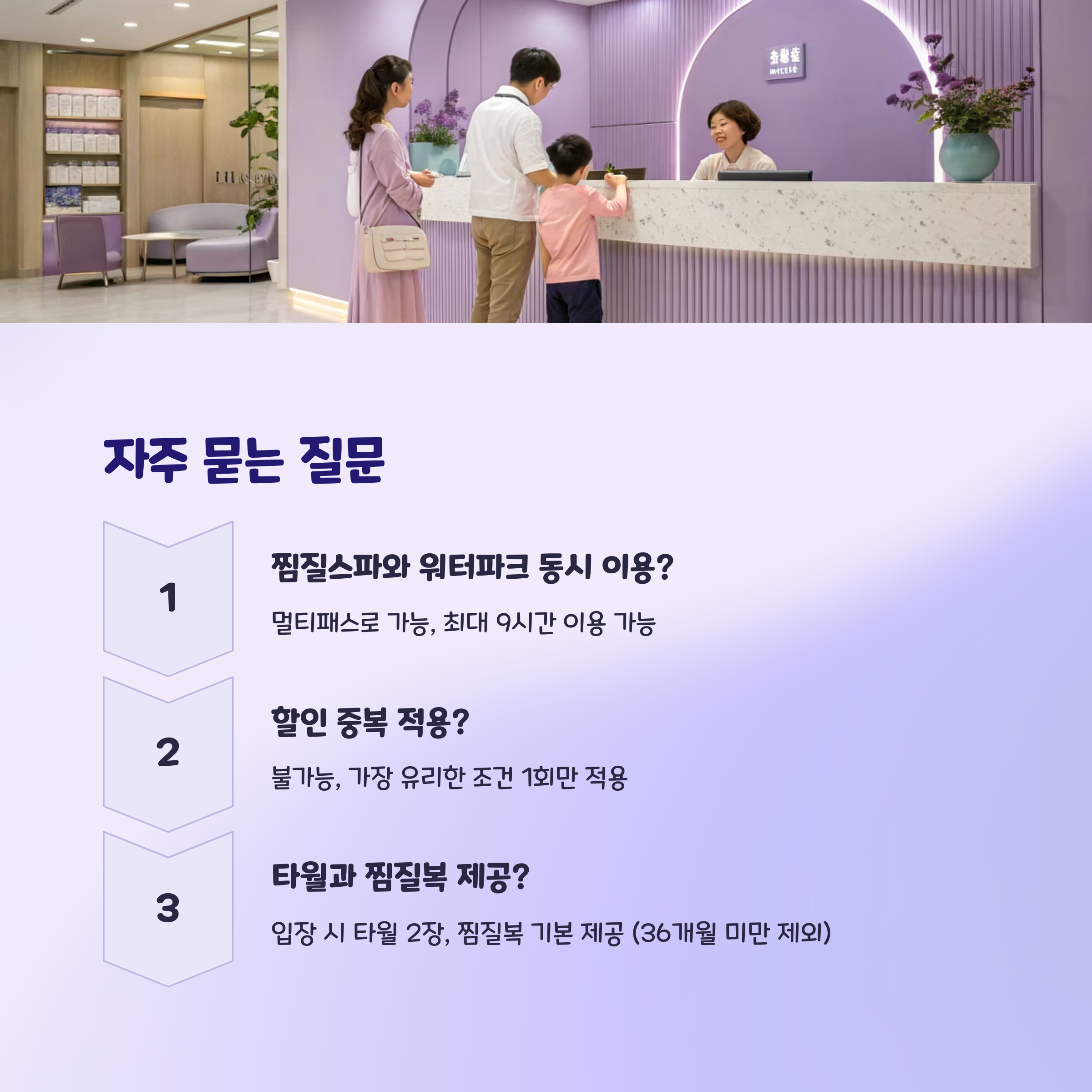 Q. 찜질스파와 워터파크를 동시에 이용할 수 있나요?