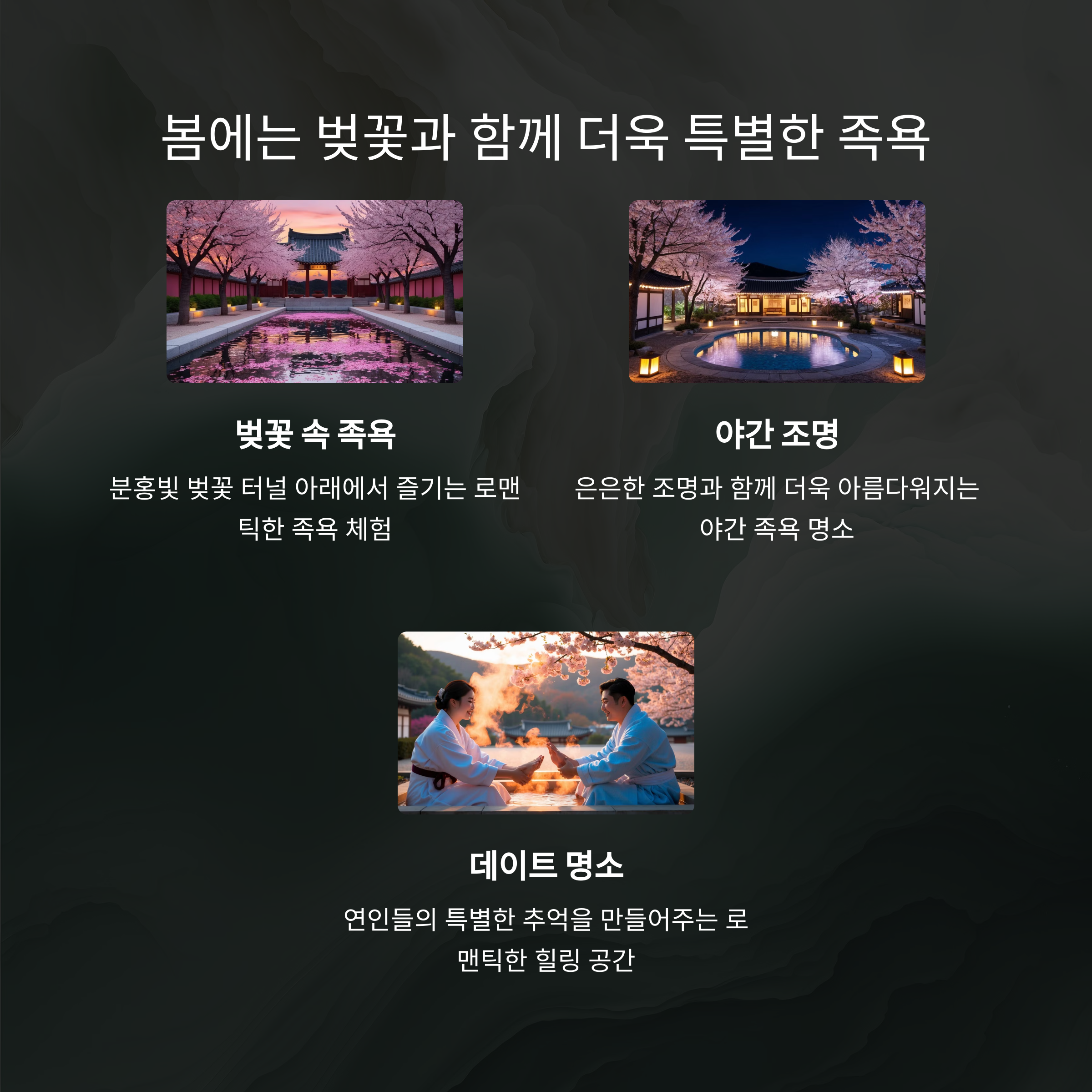| 온천수 온도 | 족욕 가능 요일 | 벚꽃 시즌 특징 |