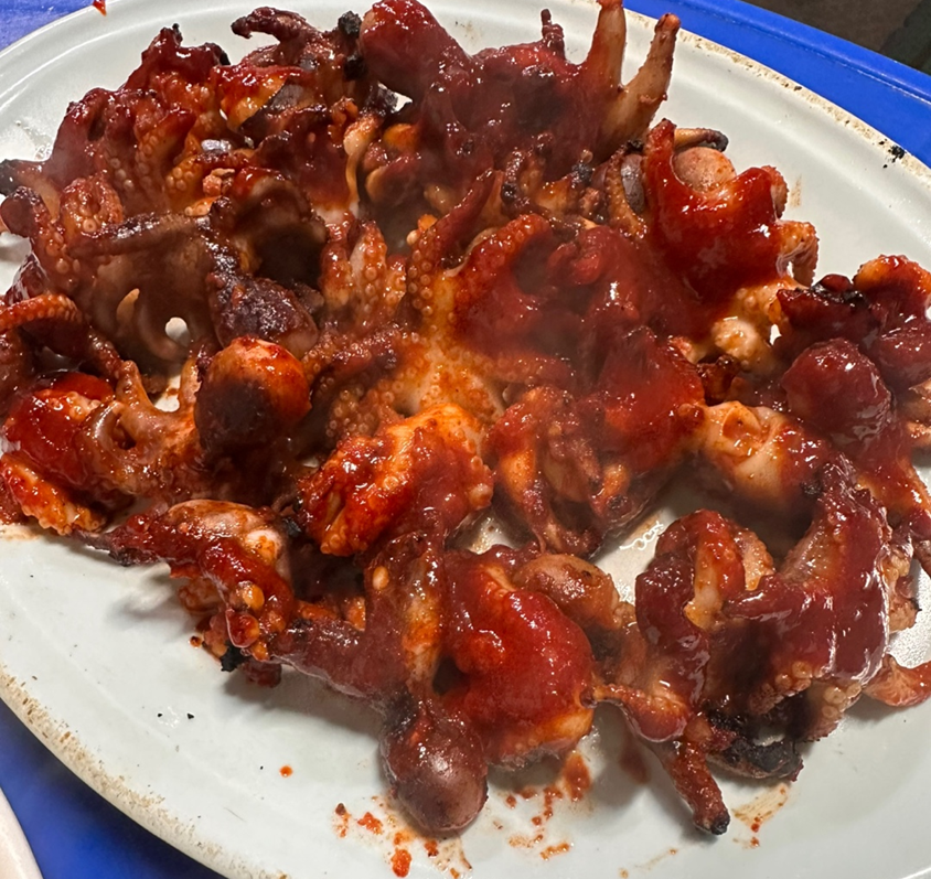 가장 인기 있는 메뉴는 단연 쭈꾸미구이입니다. 연탄불에 구운 매콤달콤한 쭈꾸미는 겉은 살짝 탄 듯한 풍미와 함께 속은 촉촉하고 부드럽습니다.