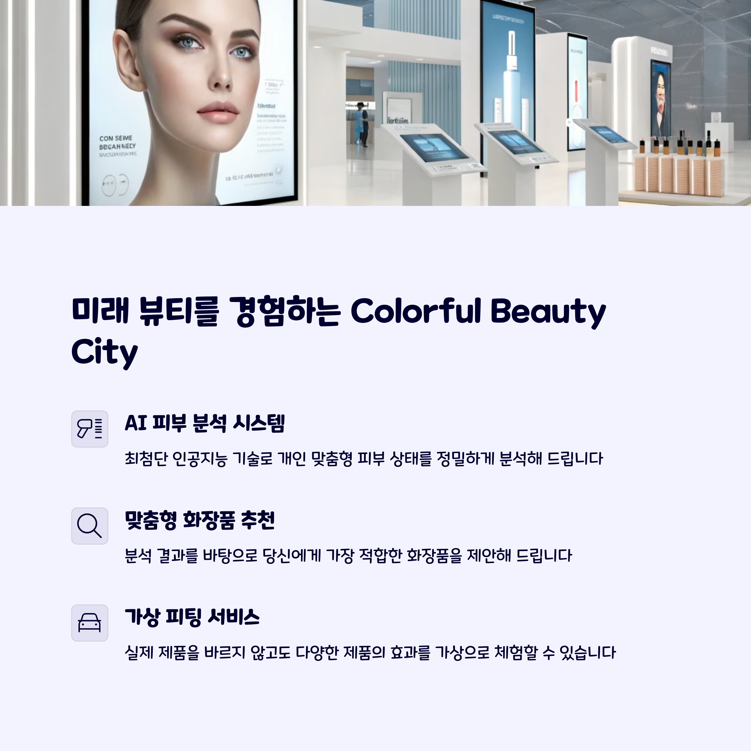 | 퍼스널 컬러 진단 | 강력한 AI 기반 분석 | 맞춤형 화장품 추천 | 개별화된 색조 추천 |
