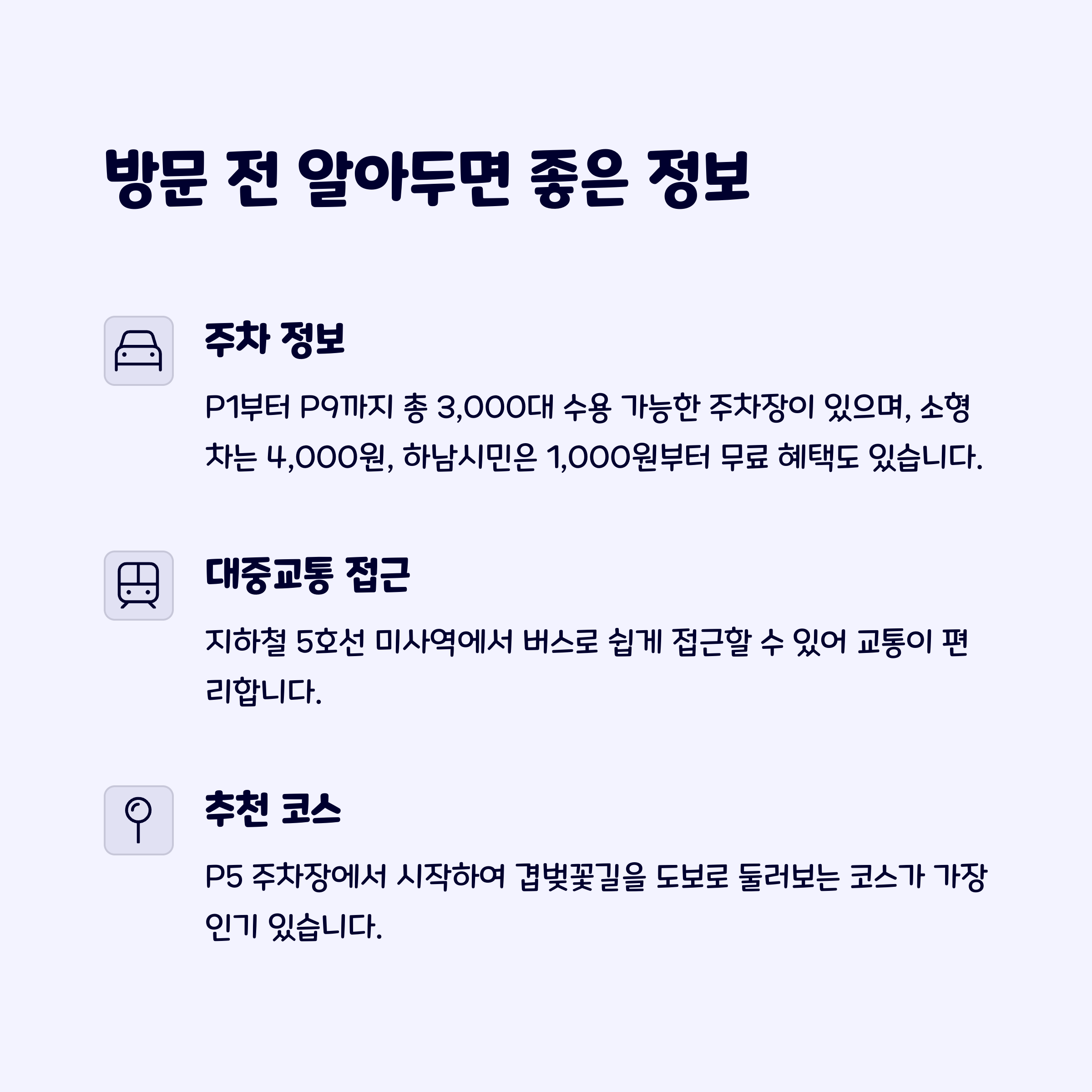 대중교통: 5호선 미사역 하차 → 127-4번 버스 → 경정공원 후문 하차