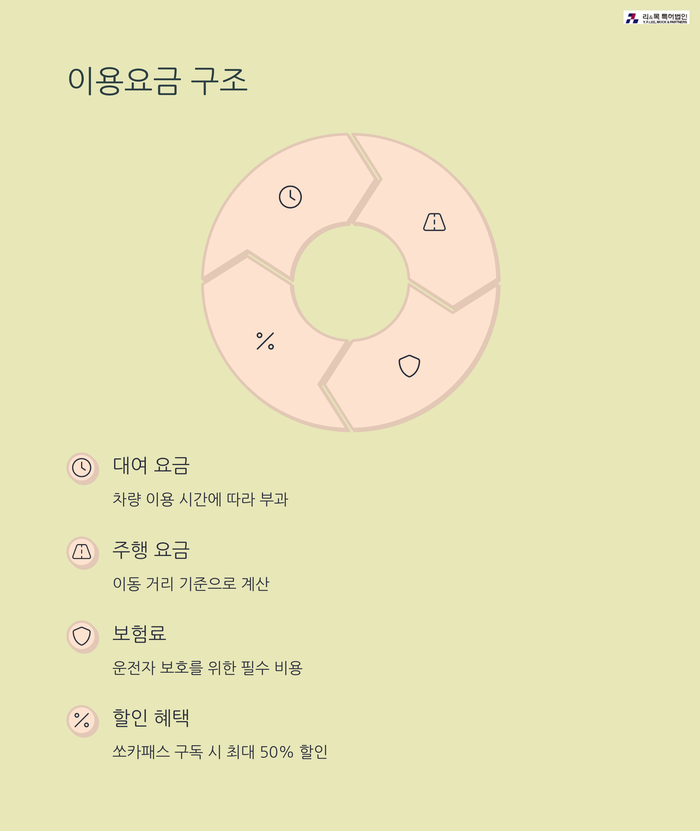 쏘카의 기본 요금 체계는 대여 요금, 주행 요금, 보험료, 기타 요금으로 구성됩니다. 대여 요금은 차량을 이용한 시간에 따라 부과되며, 주행 요금은 이동 거리 기준으로 계산됩니다. 보험료는 운전자 보호를 위한 필수 비용이며, 편도 이용 시 추가 요금도 발생할 수 있습니다.