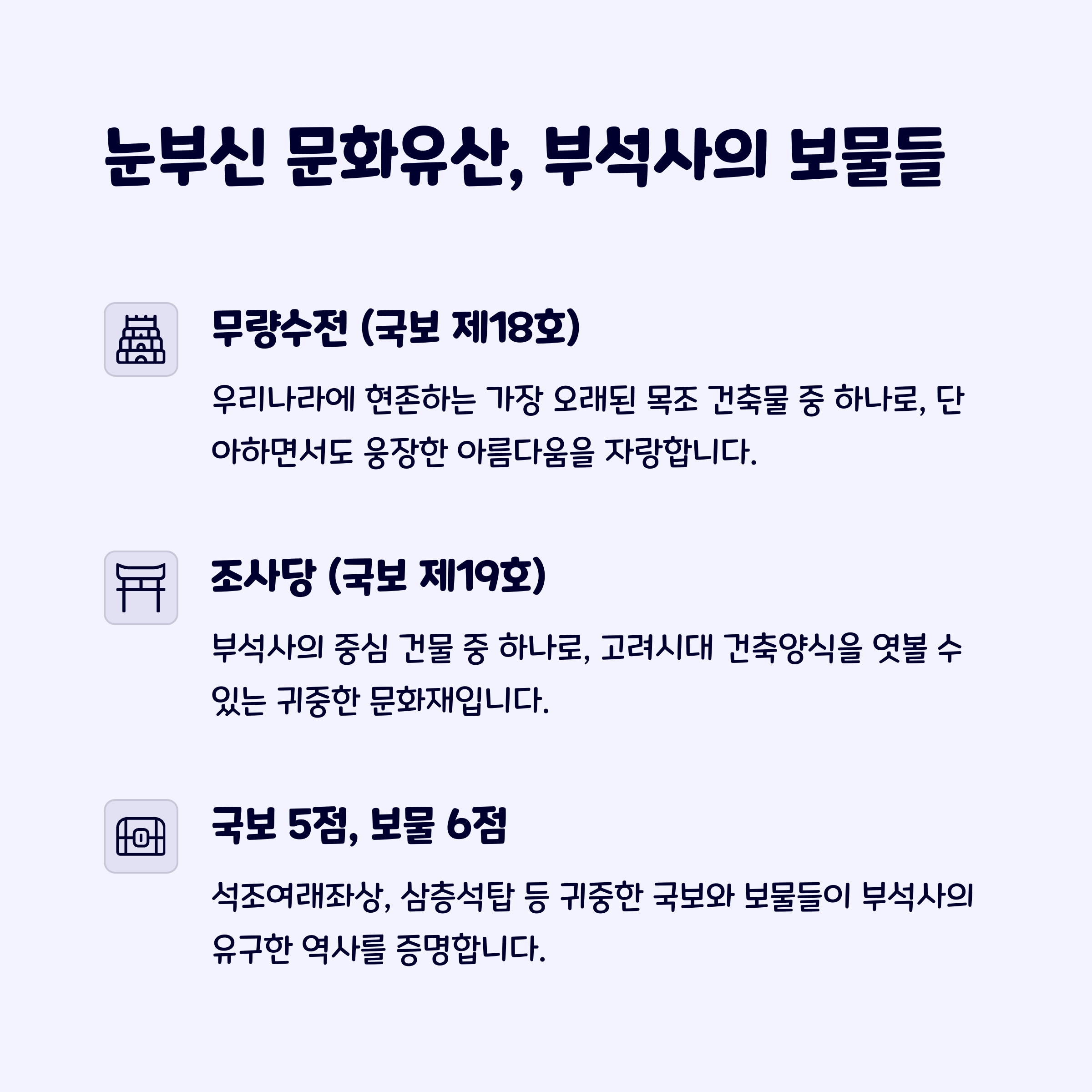 부석사는 경북 영주시 부석면 부석사로 345에 위치한 천년 고찰로, 신라 문무왕 16년(676년)에 의상대사가 창건한 화엄종의 본찰입니다.