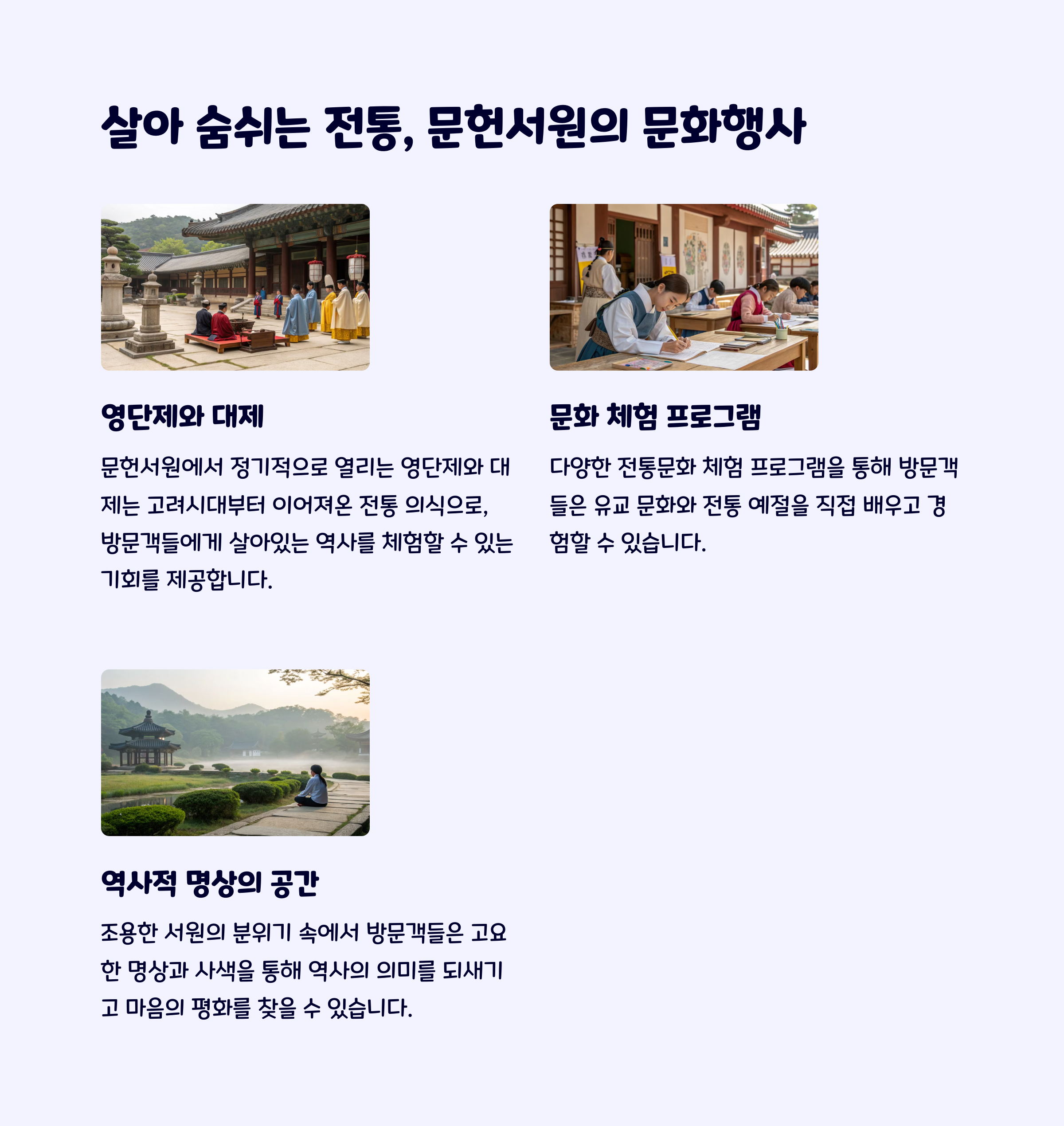 이곳은 유교 문화의 흔적과 역사적 가치를 동시에 느낄 수 있는 특별한 공간으로, 가족 단위나 홀로 방문해도 매우 추천합니다.