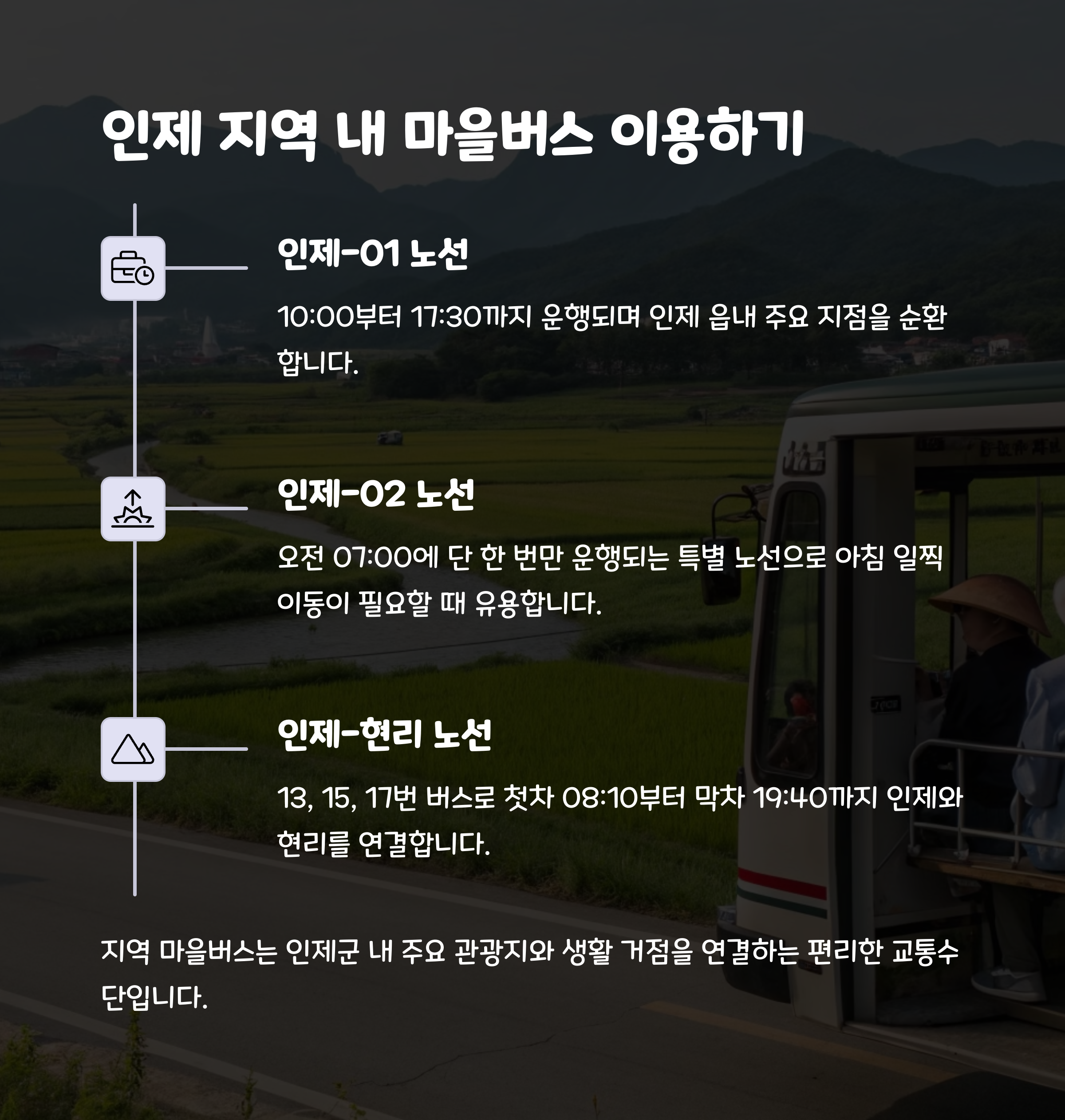 - 시간표는 수시로 변동될 수 있으니, 공식 인제군 버스정보시스템(https://bis.inje.go.kr)을 참고하세요.