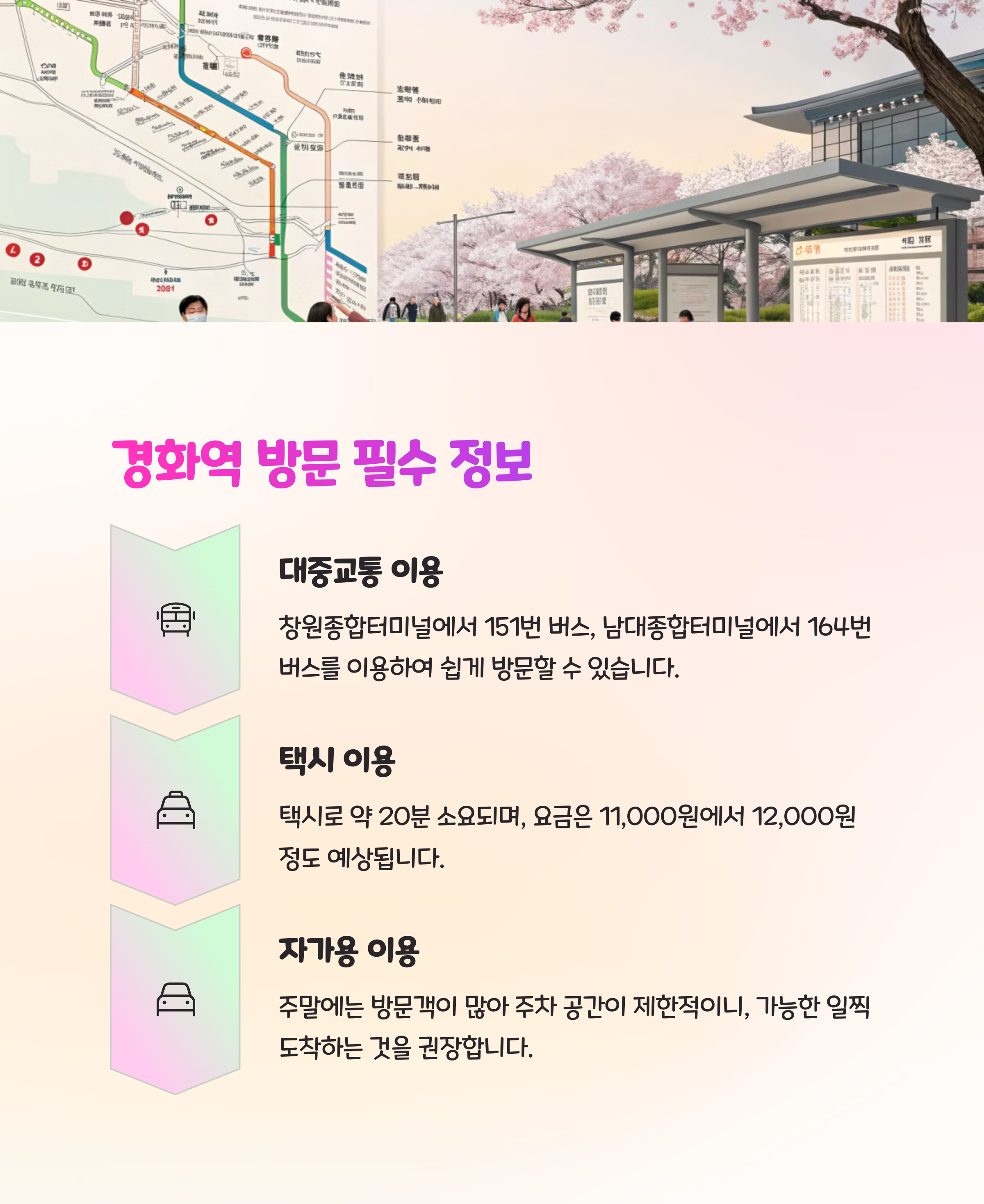 | 경화역 공영주차장 | 진해대로 649 | 3분 거리 |