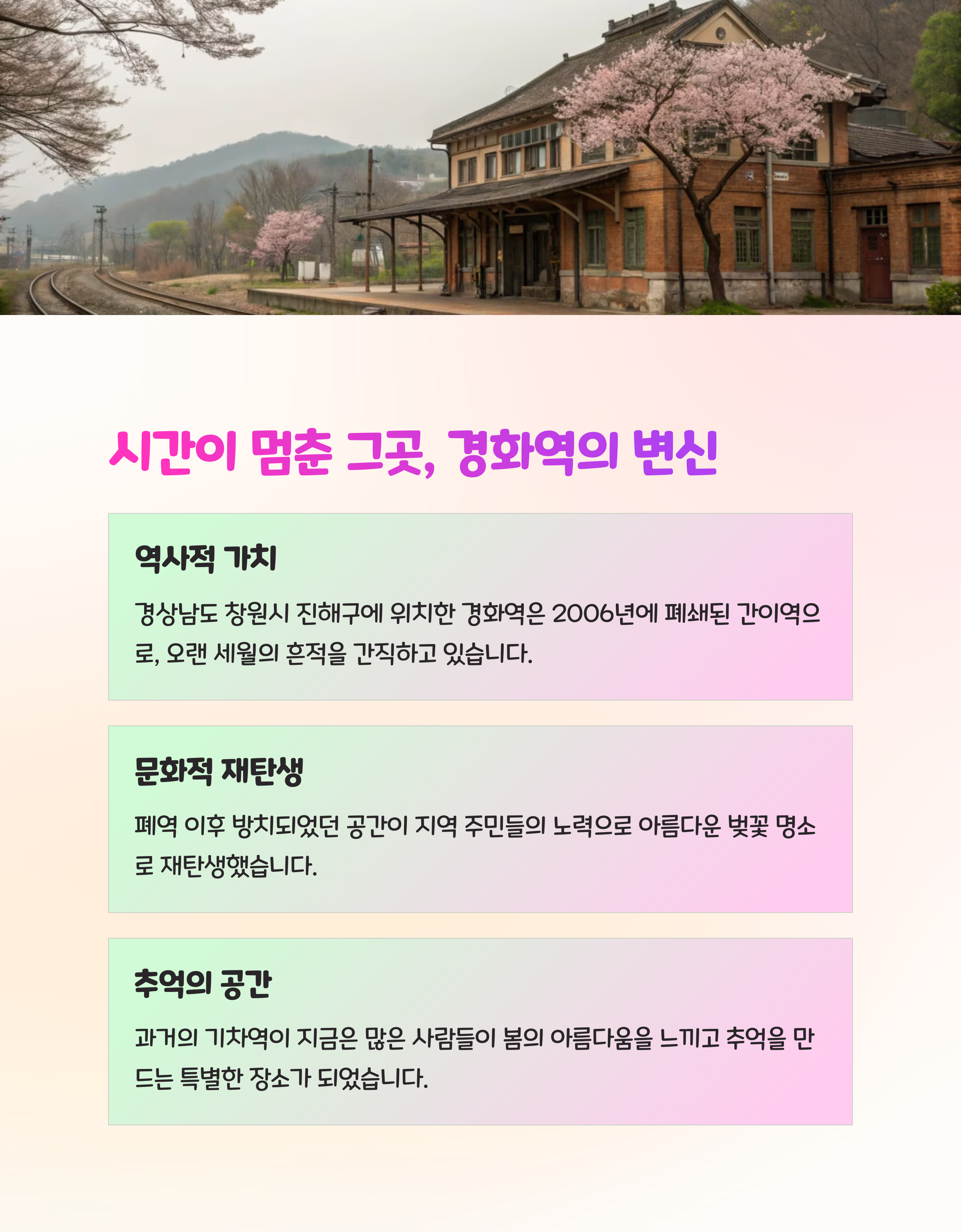 진해 벚꽃의 숨겨진 보석, 경화역을 탐험하세요!