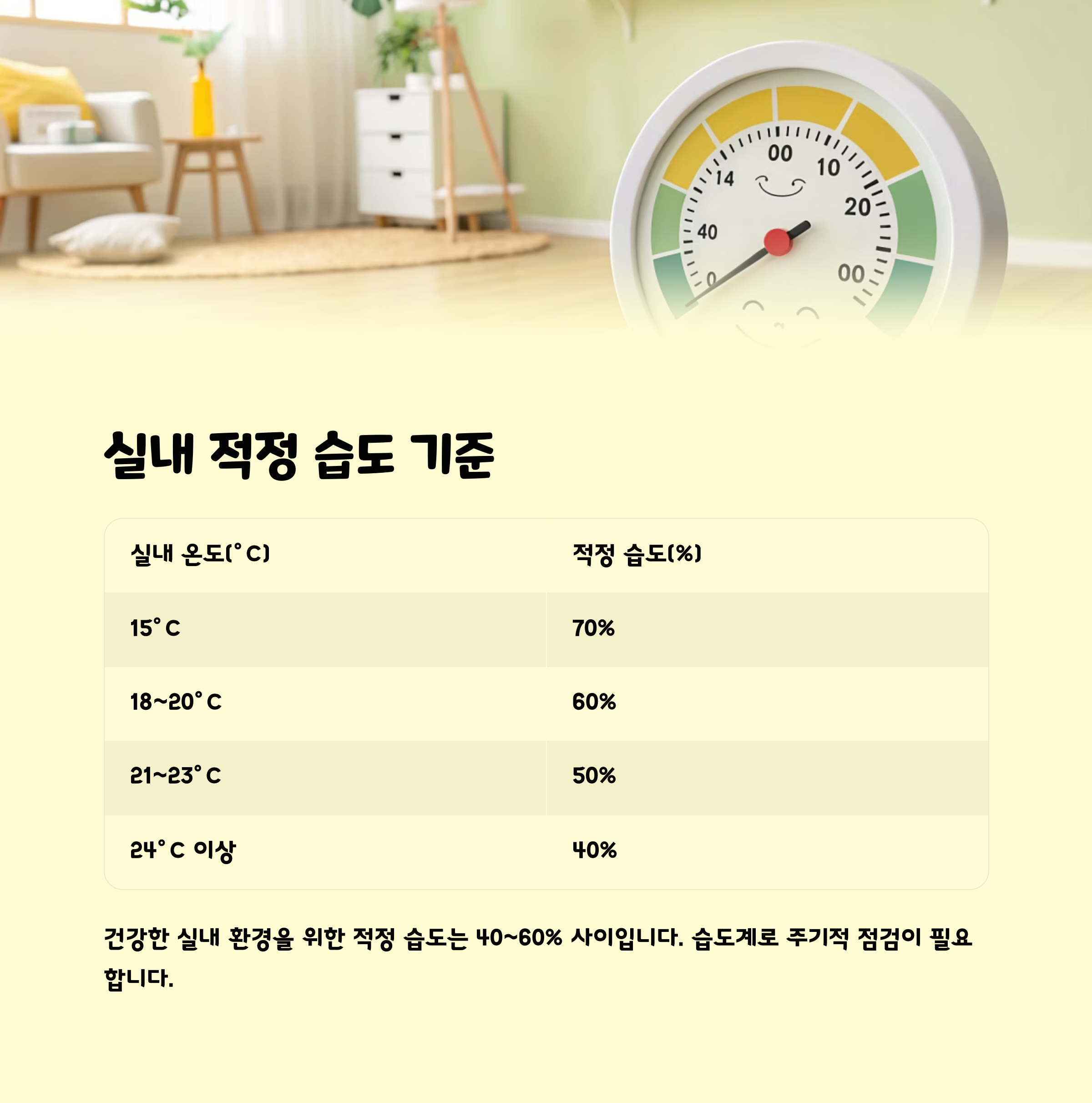 | 실내 온도(°C) | 적정 습도(%) |