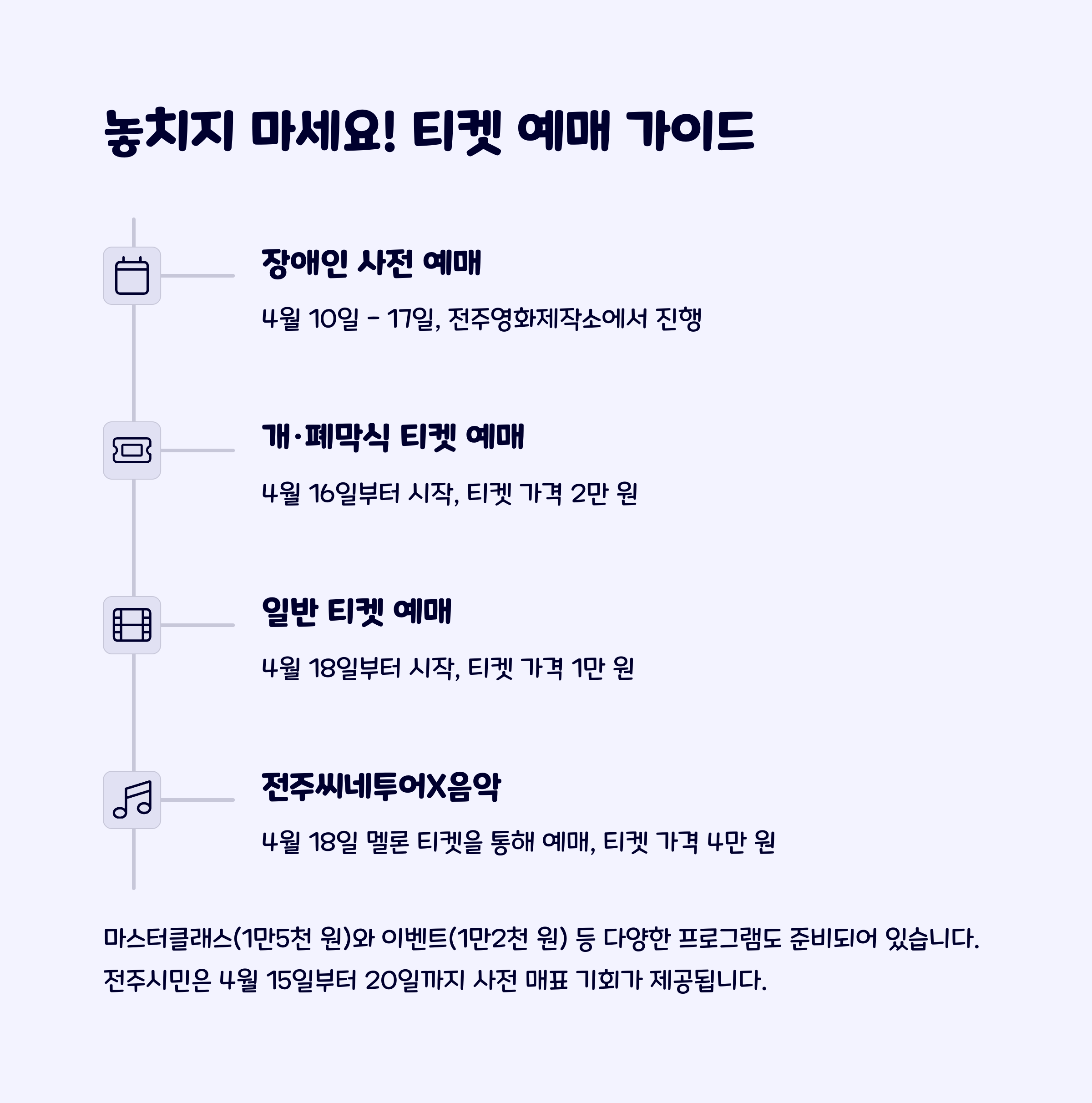 ● 전주시민 사전 매표소: 전주영화제작소 4층, 4월 15일 ~ 20일 운영