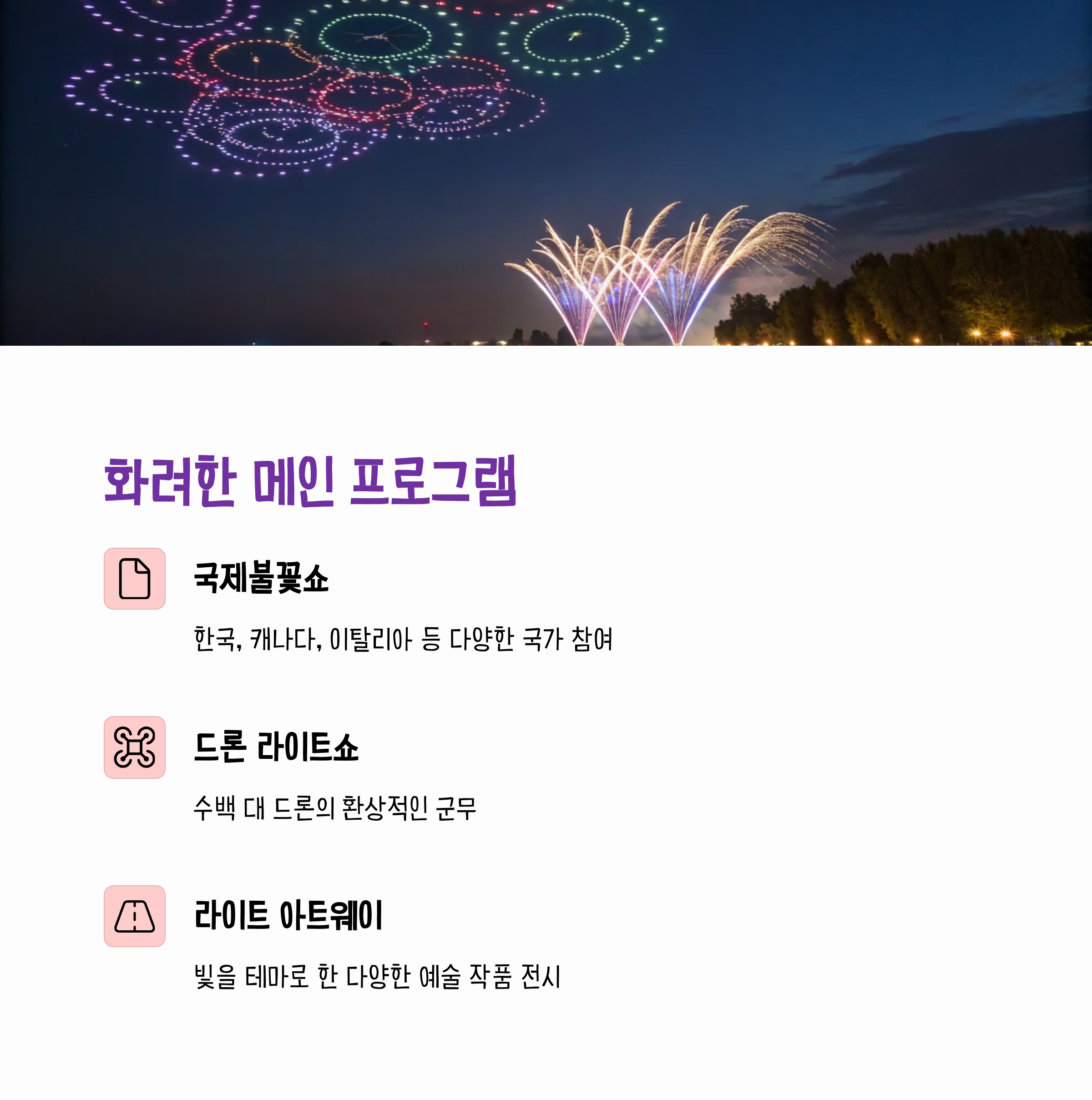 여름 밤하늘을 수놓을 포항국제불빛축제의 모든 것을 한눈에 확인하세요
